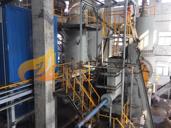 危廢處理系統(tǒng)由上料裝置、進料裝置、回轉(zhuǎn)窯本體、二次燃燒室、導(dǎo)熱油爐、急冷塔、布袋除塵器、活性炭及消石灰噴粉裝置、引風(fēng)機、